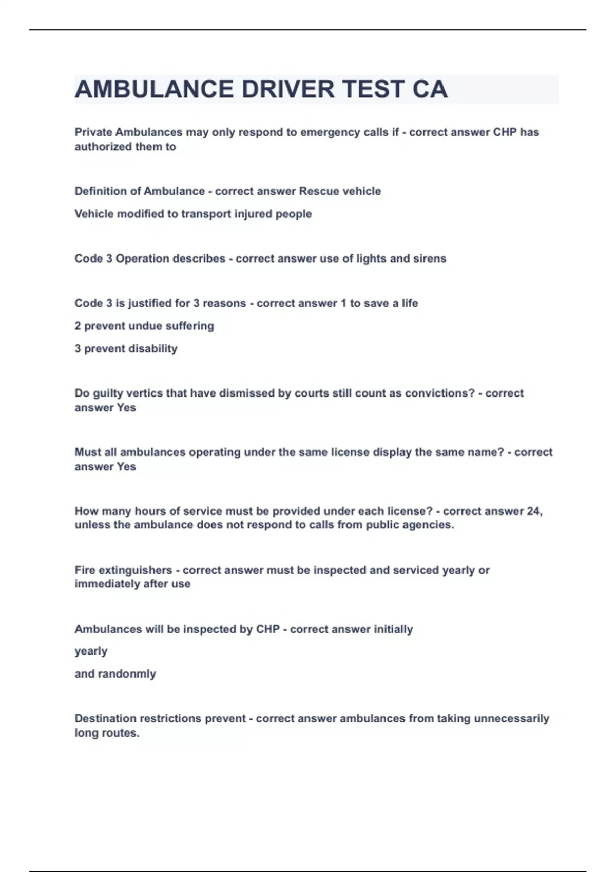 CA AMBULANCE DRIVER TEST|WITH 100%SOLUTIONS|VERIFIED&UPDATED|DOWNLOAD TO PASS