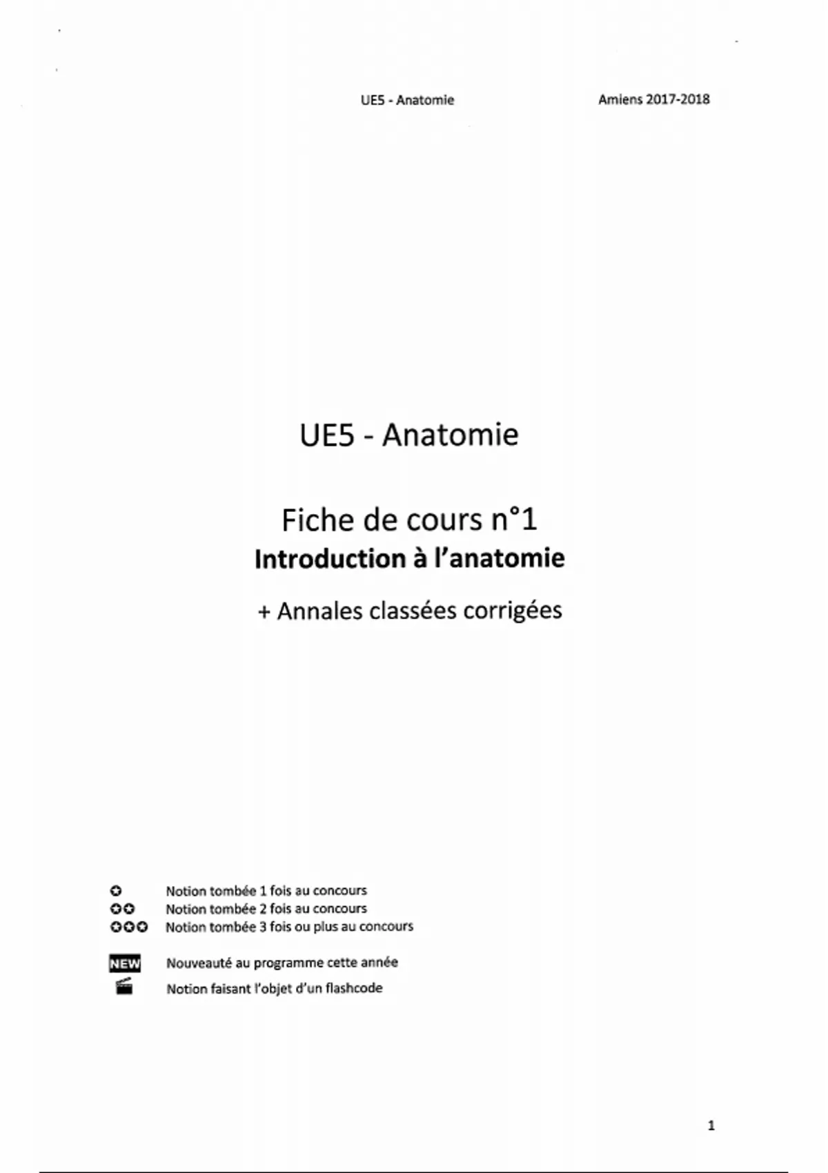 Résumé UE5 FC1 - Introduction à l'anatomie