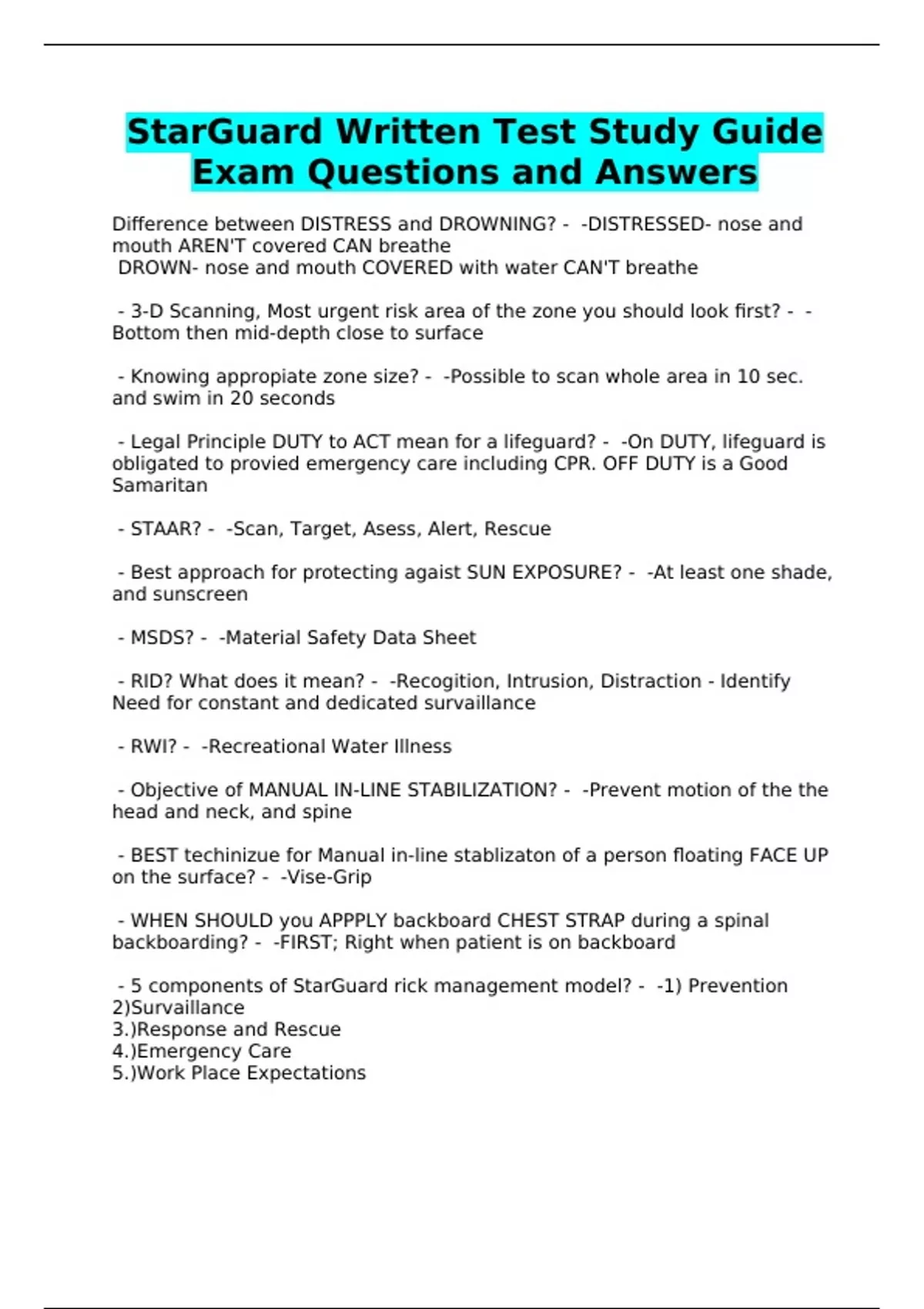 StarGuard Written Test Study Guide Exam Questions and Answers