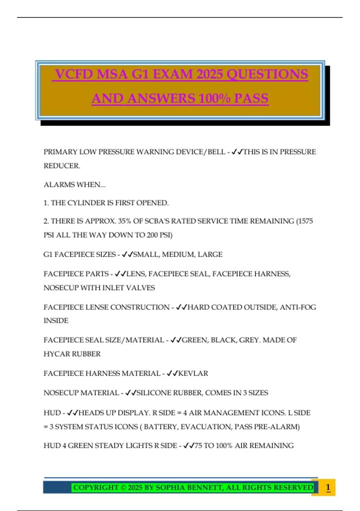 MSA G1 SCBA Bundled Exams 2025 Questions and Answers 100% Pass Guaranteed