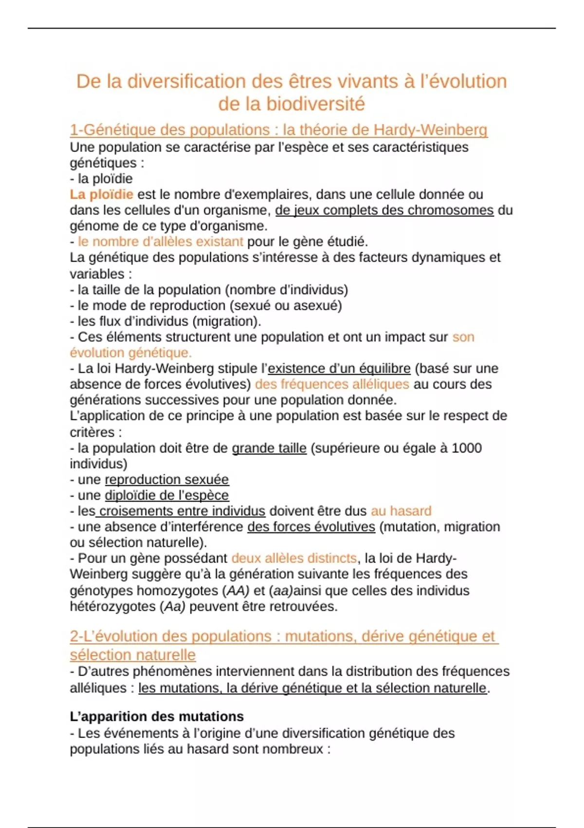 pack de fiche révision/cours spécialité sciences de la vie et de la terre terminale contenant 4 résumé sur la génétique à propos de la diversification du vivant, les brassages et les autres mécanismes 12€ au lieu de 16€ - 4 fiches