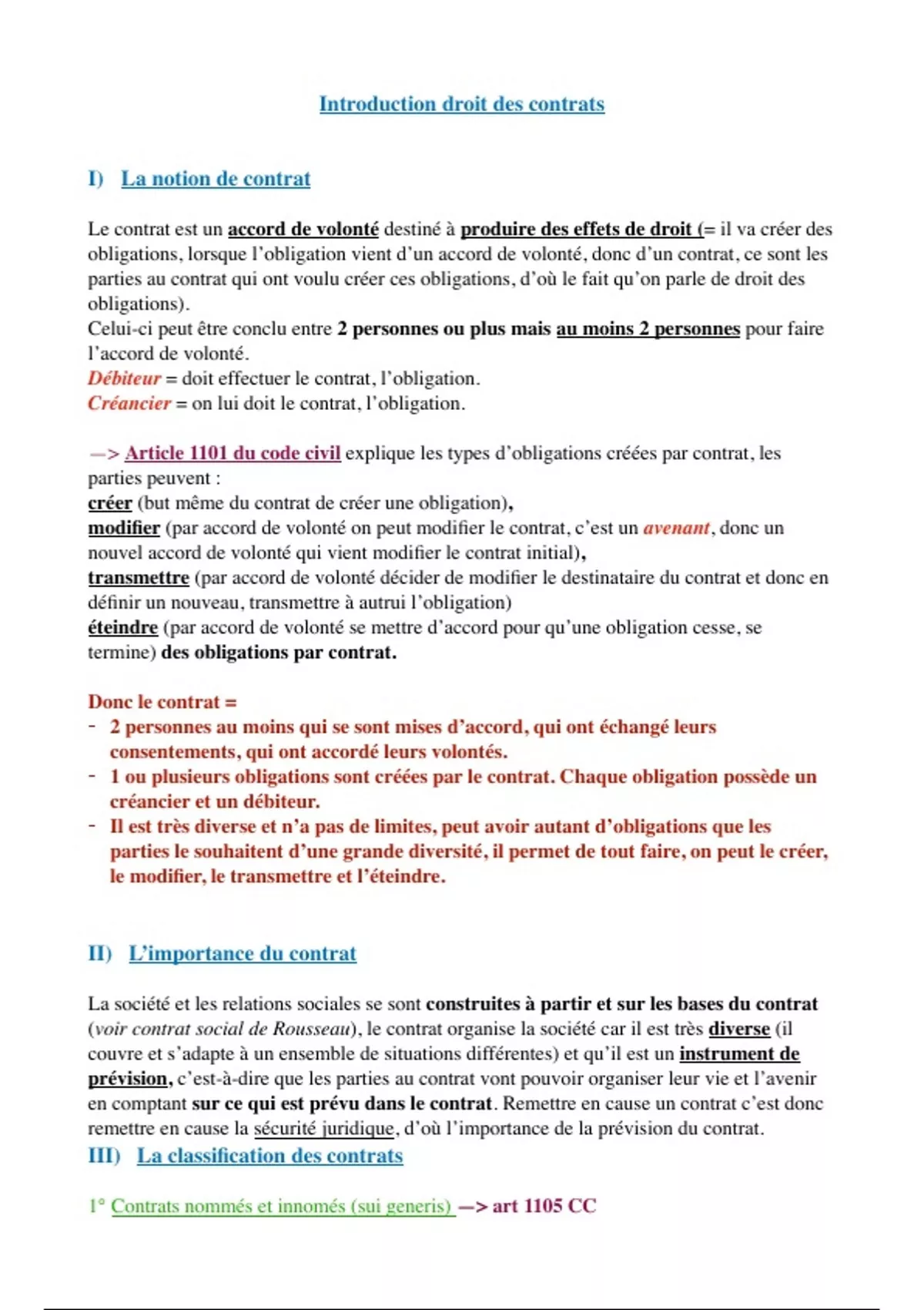 Cours complet droit des contrats (droit des obligations) L2 droit