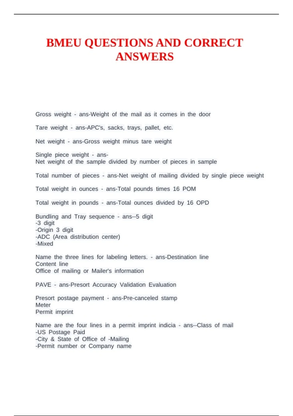 BMEU QUESTIONS AND CORRECT ANSWERS
