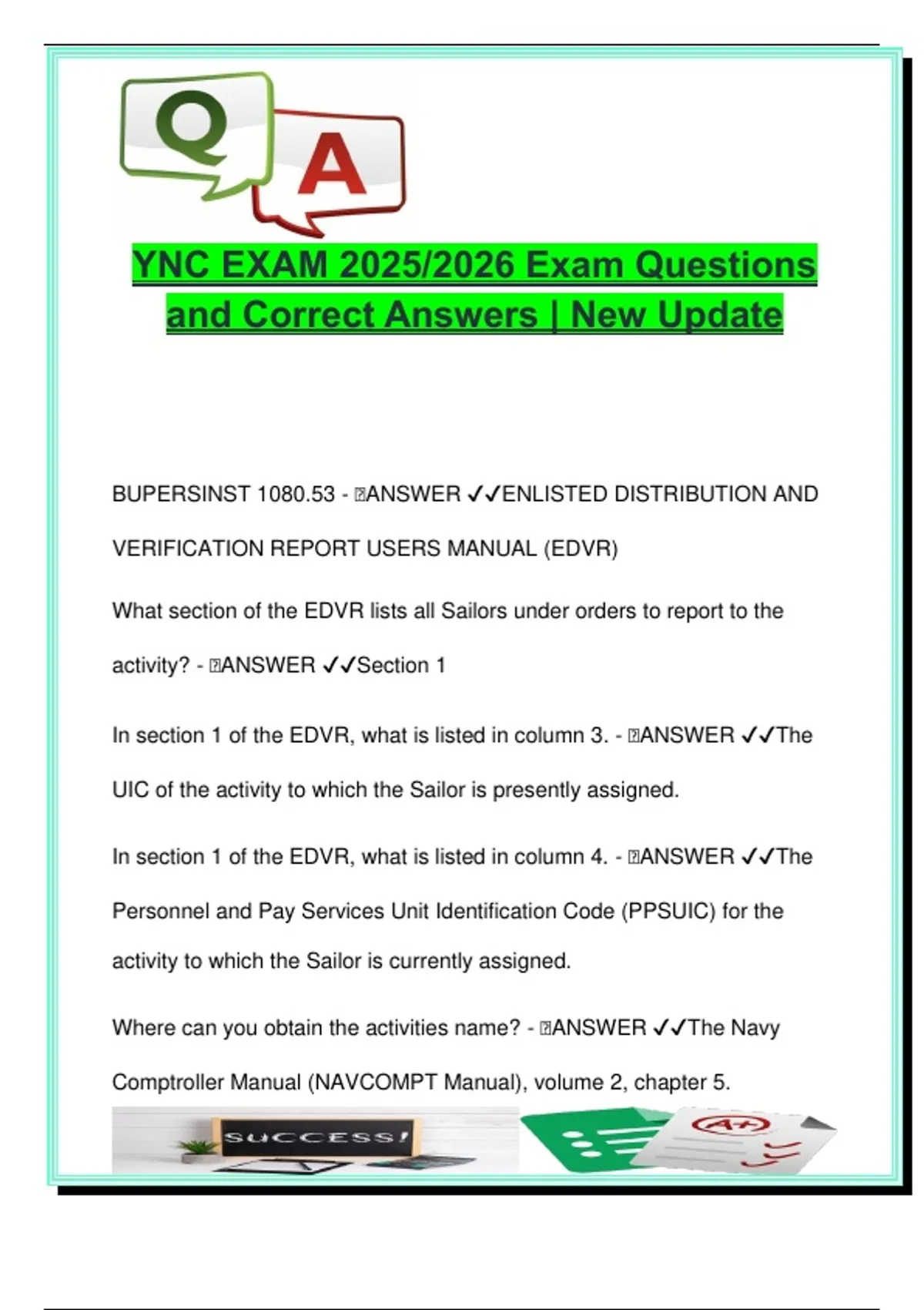 YNC (Yeoman Chief) Exam – 2025/2026 – 100+ Verified Questions on Navy Correspondence, Evaluations, Legal Admin, Records Management & Military HR Procedures