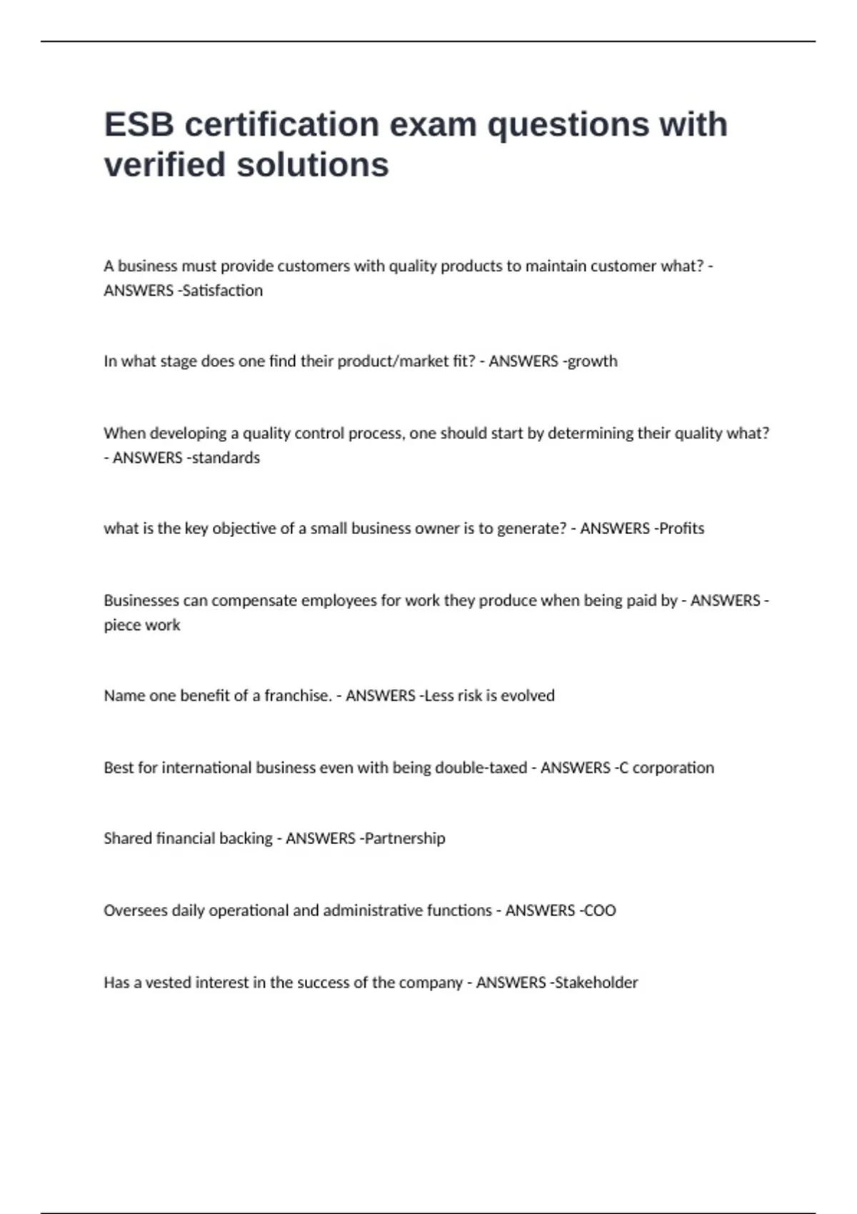 ESB Certification Exam Review Questions and Answers