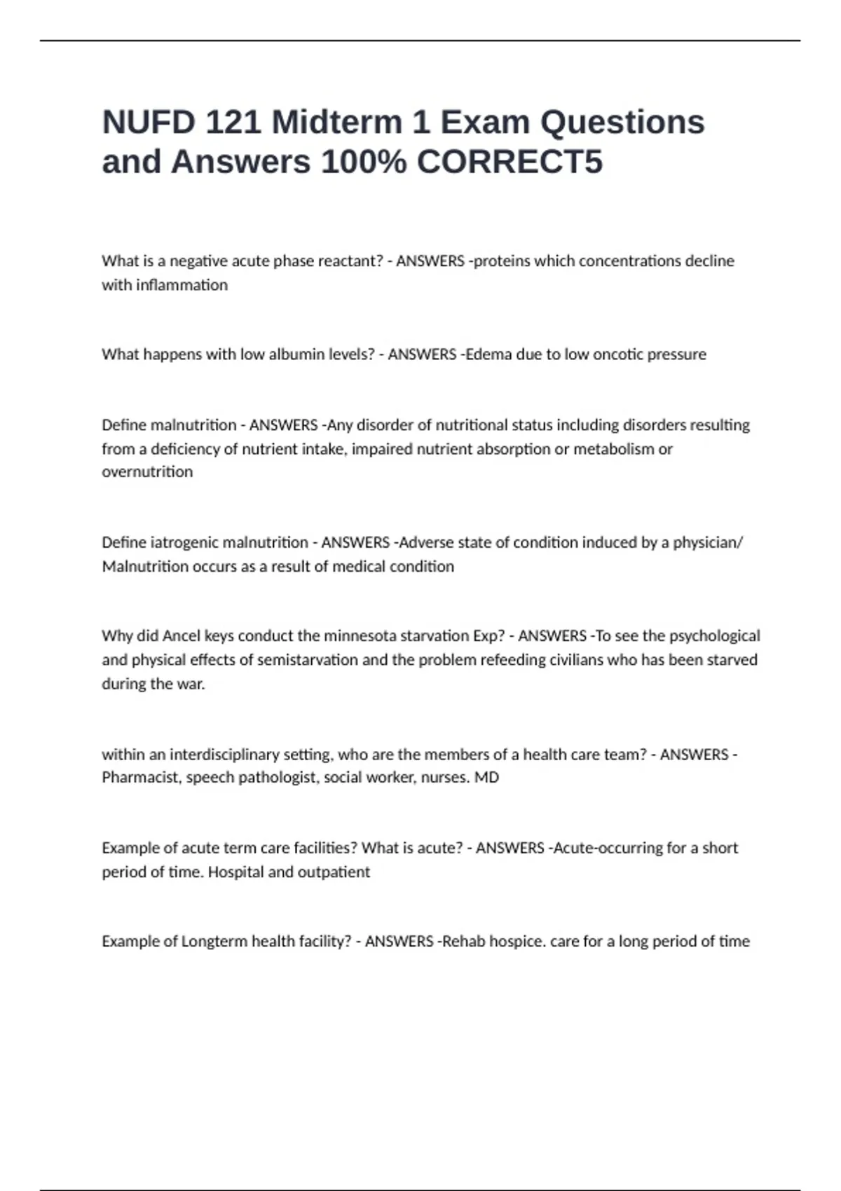 NUFD 121 Midterm 1 Exam Questions and Answers 100% CORRECT