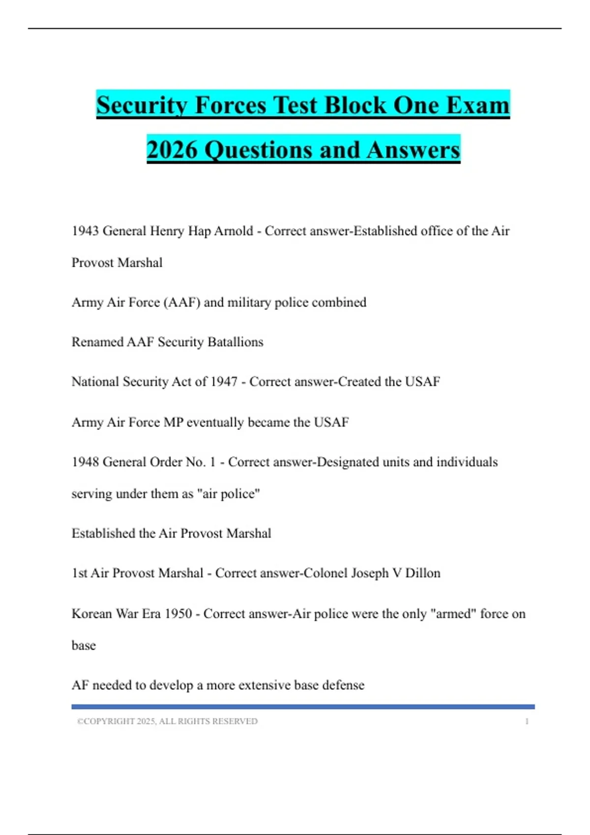 Security Forces Test Block One Exam 2026 Questions and Answers