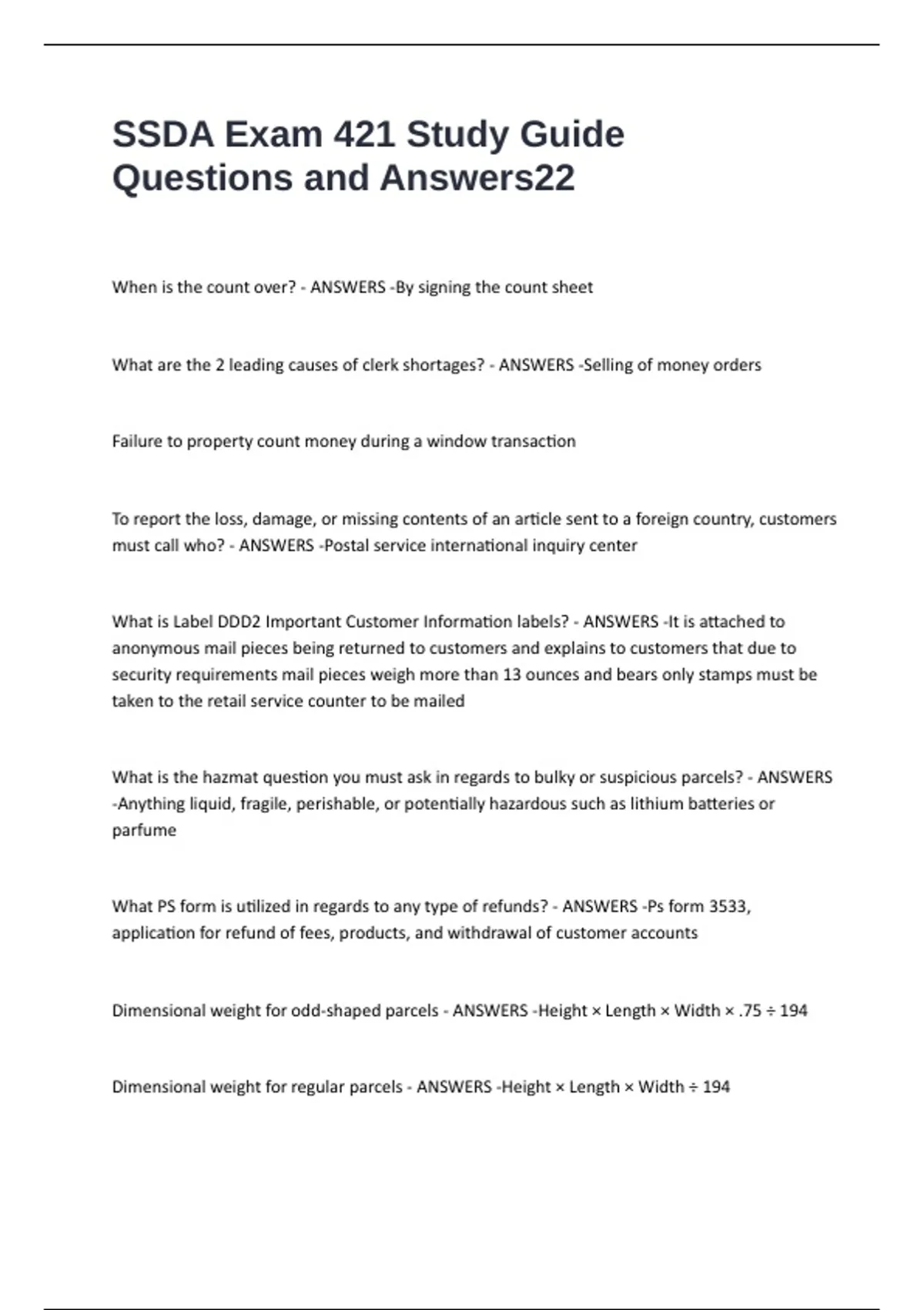 SSDA Exam 421 Study Guide Questions and Answers