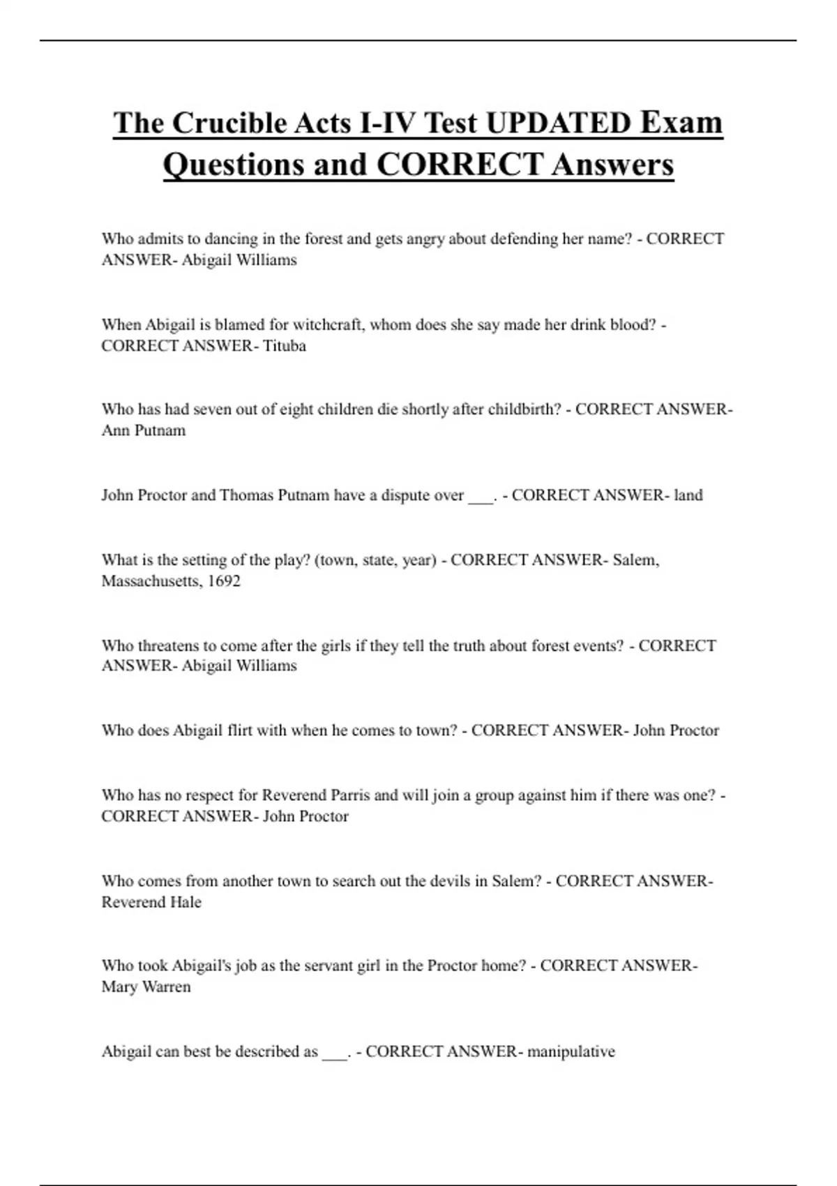 crucible Bundled Exam Questions WITH CORRECT Answers