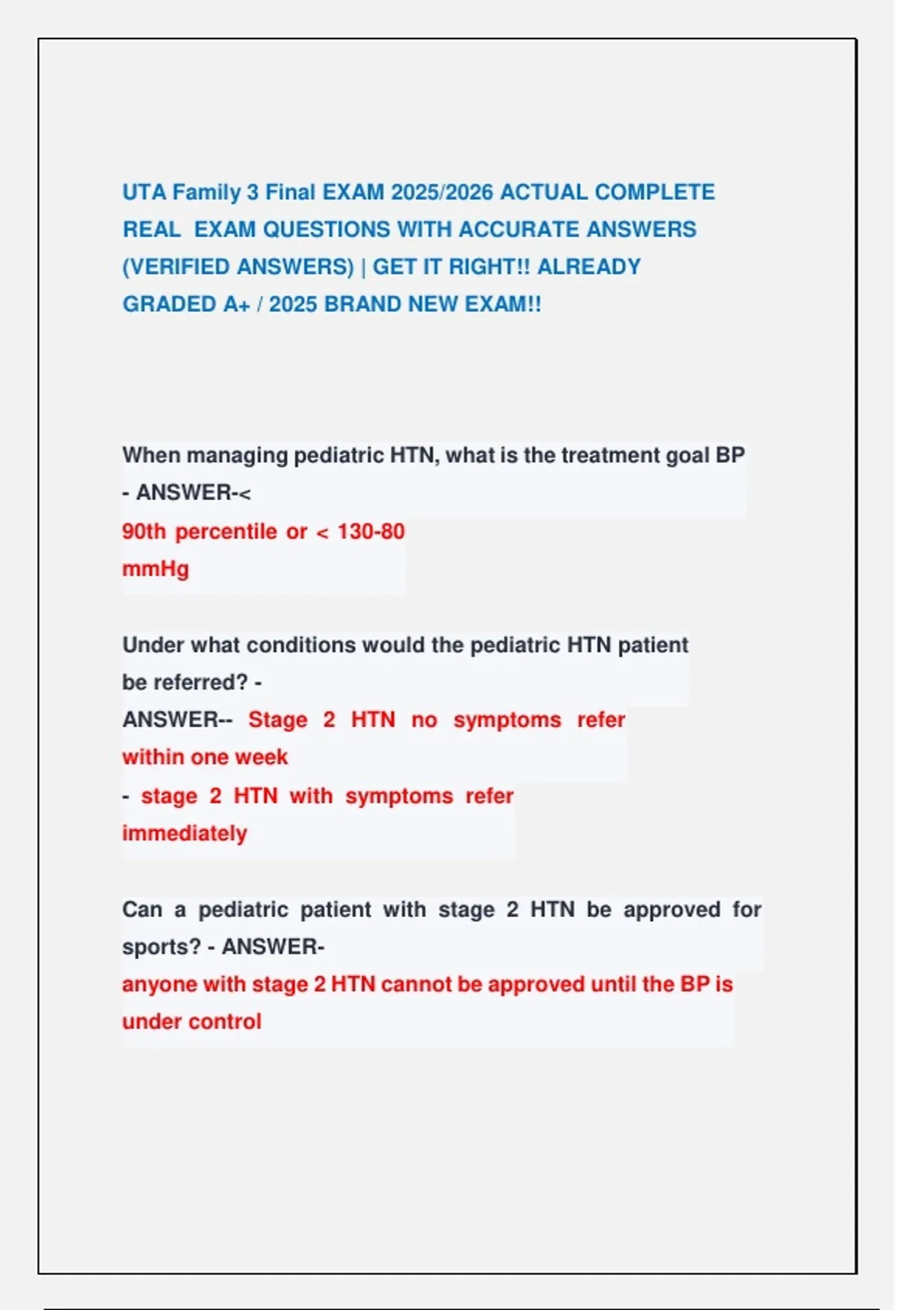 UTA Family 3 Final EXAM 2025/2026 ACTUAL COMPLETE REAL EXAM QUESTIONS WITH ACCURATE ANSWERS (VERIFIED ANSWERS) | GET IT RIGHT!! ALREADY GRADED A+ / 2025 BRAND NEW EXAM!! UTA Family 3 Final Exam , Most Recent Version 2025/2026 Actual Complete Real Exam Questions And Correct Answers (Verified Answers) Already Graded A+ / Newest Exam / Just Released!!