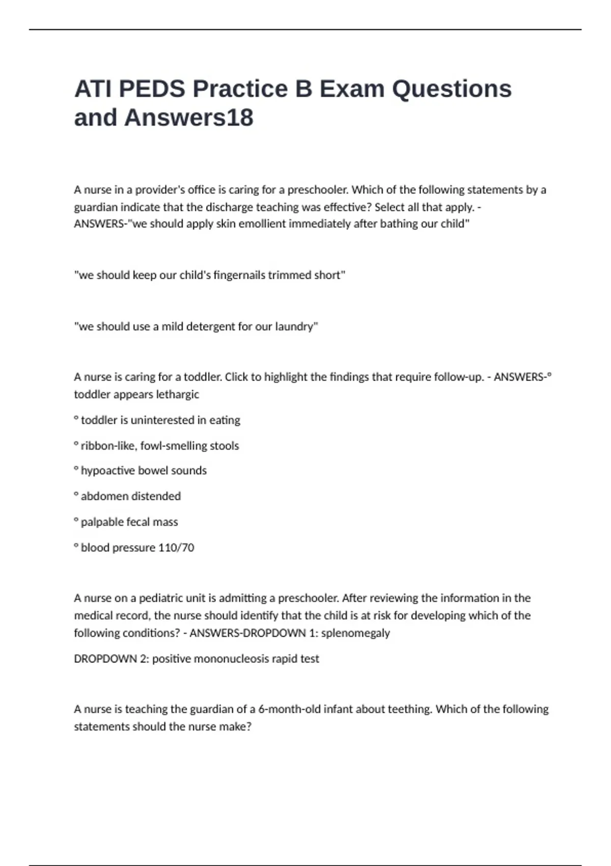 ATI PEDS EXAM 4 QUESTIONS AND ANSWERS