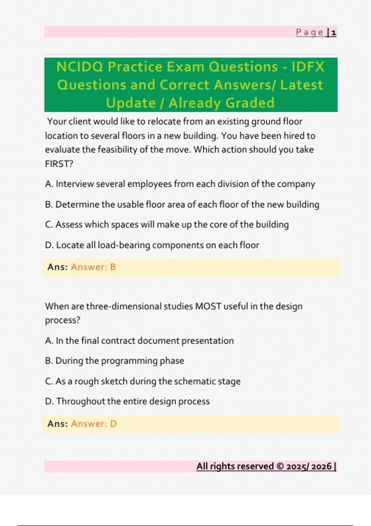 NCIDQ Questions and Correct Answers/ Latest Update / Already Graded