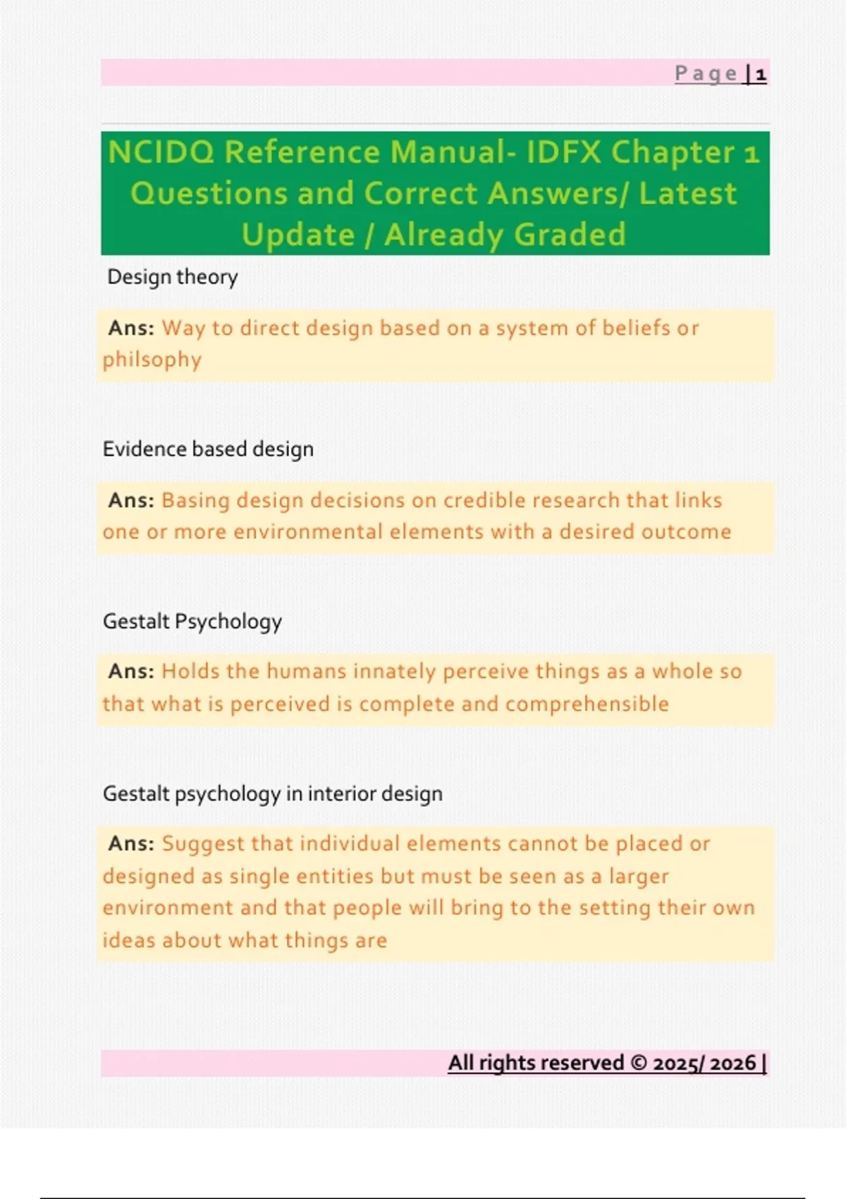 NCIDQ Questions and Correct Answers/ Latest Update / Already Graded