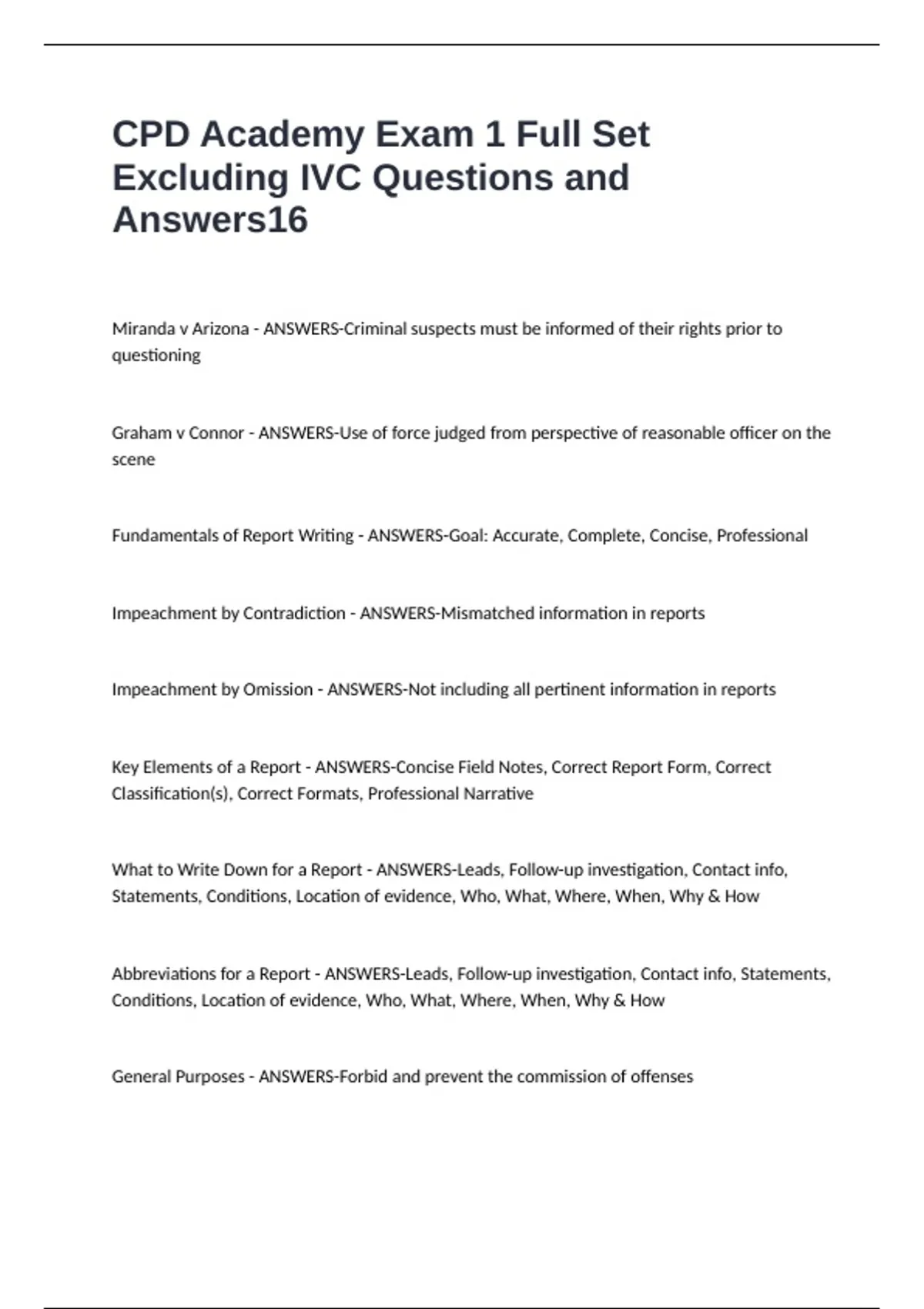 CPD Academy Exam 1 Full Set Excluding IVC Questions and Answers