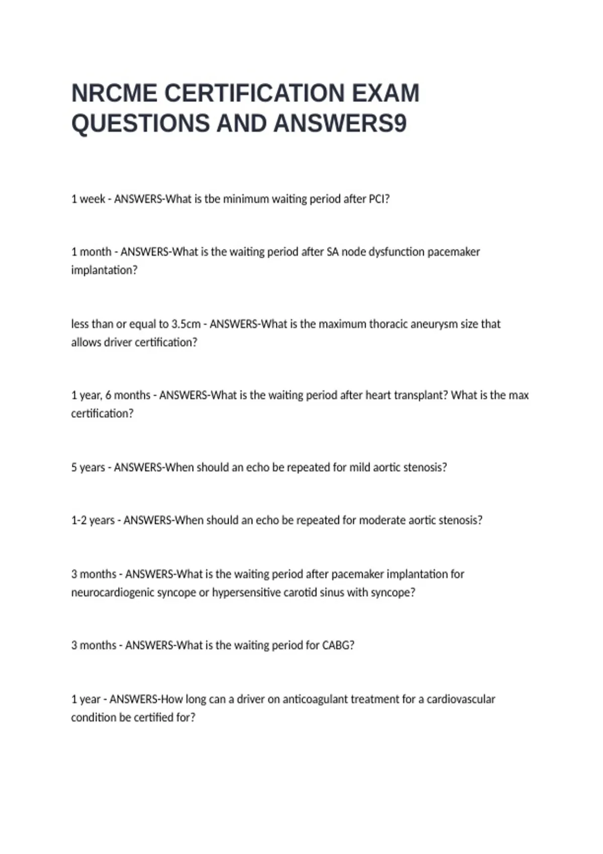 NRCME CERTIFICATION EXAM QUESTIONS AND ANSWERS