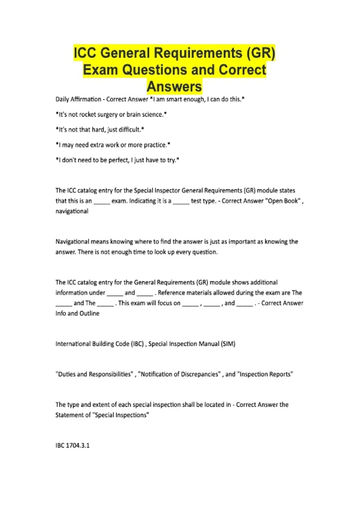 ICC General Requirements (GR) Exam Questions and Correct Answers