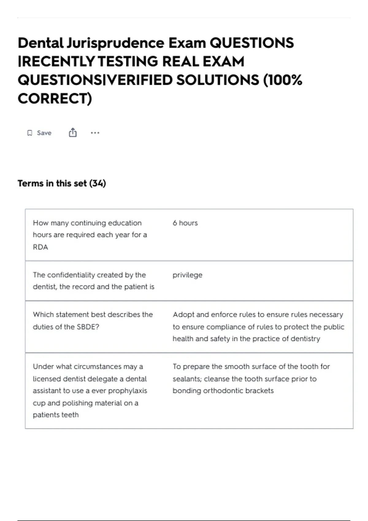 Dental Jurisprudence Exam QUESTIONS |RECENTLY TESTING REAL EXAM QUESTIONS|VERIFIED SOLUTIONS (100% CORRECT)