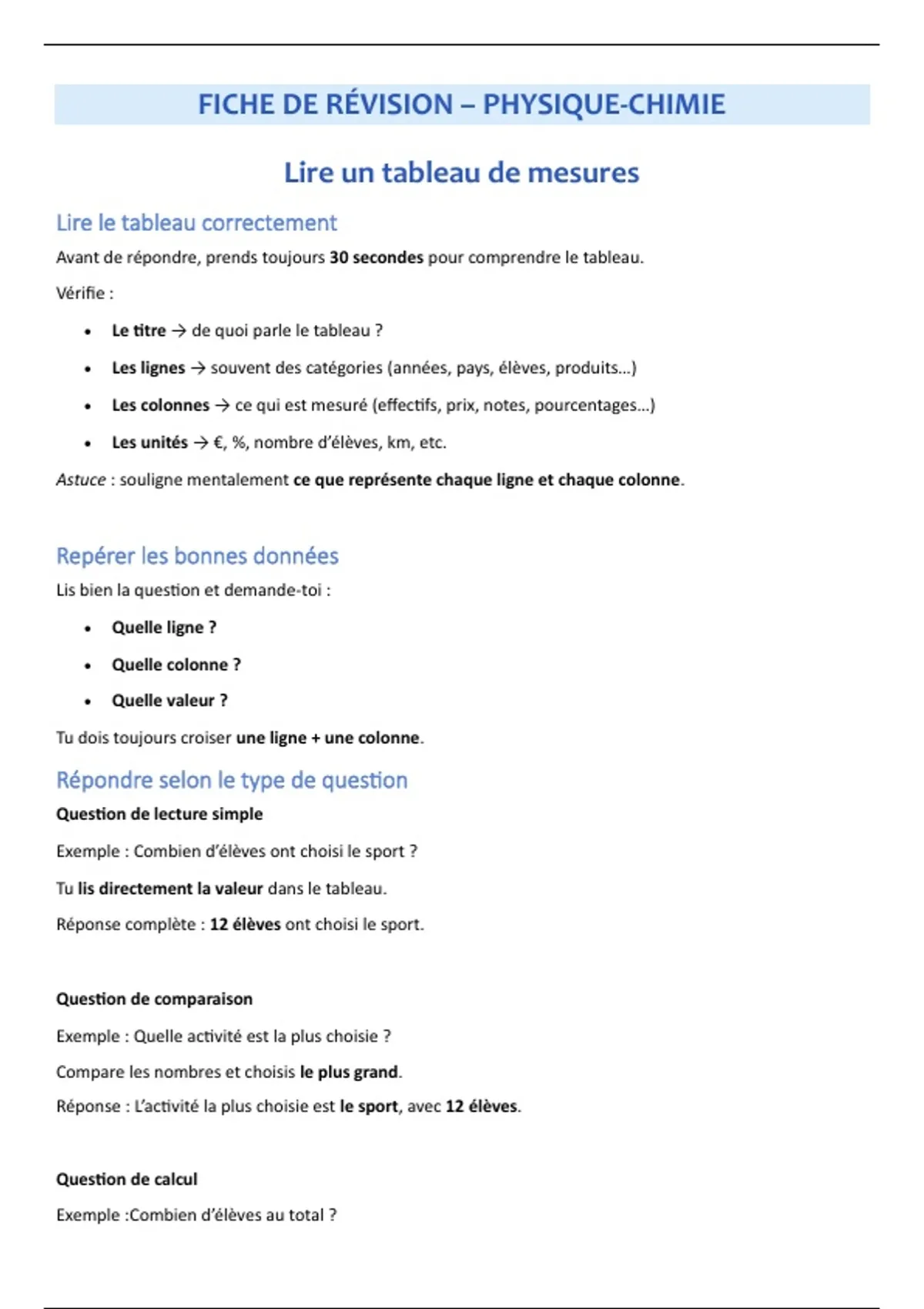 FICHE DE RÉVISION – PHYSIQUE-CHIMIE