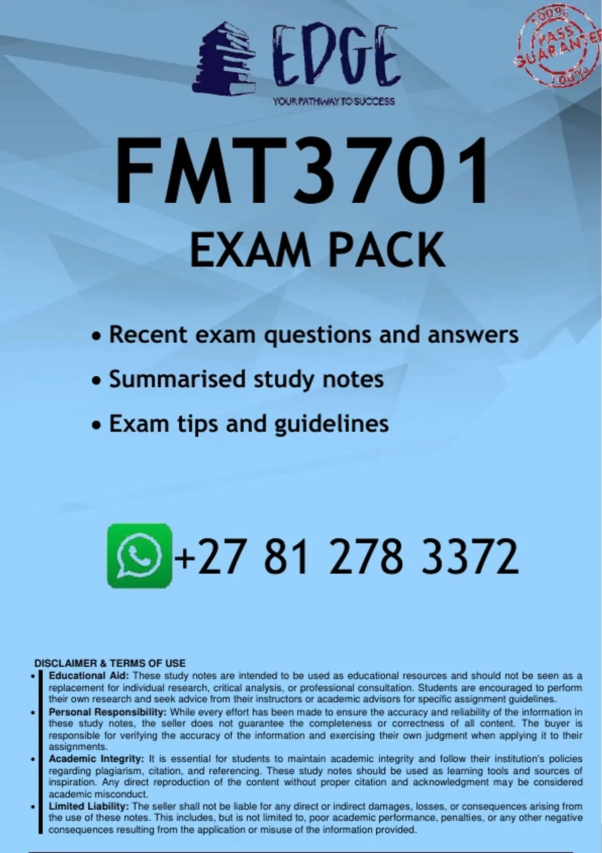 The FMT3701 Exam is a closed-book examination. You are not permitted to access any external resources or view documents