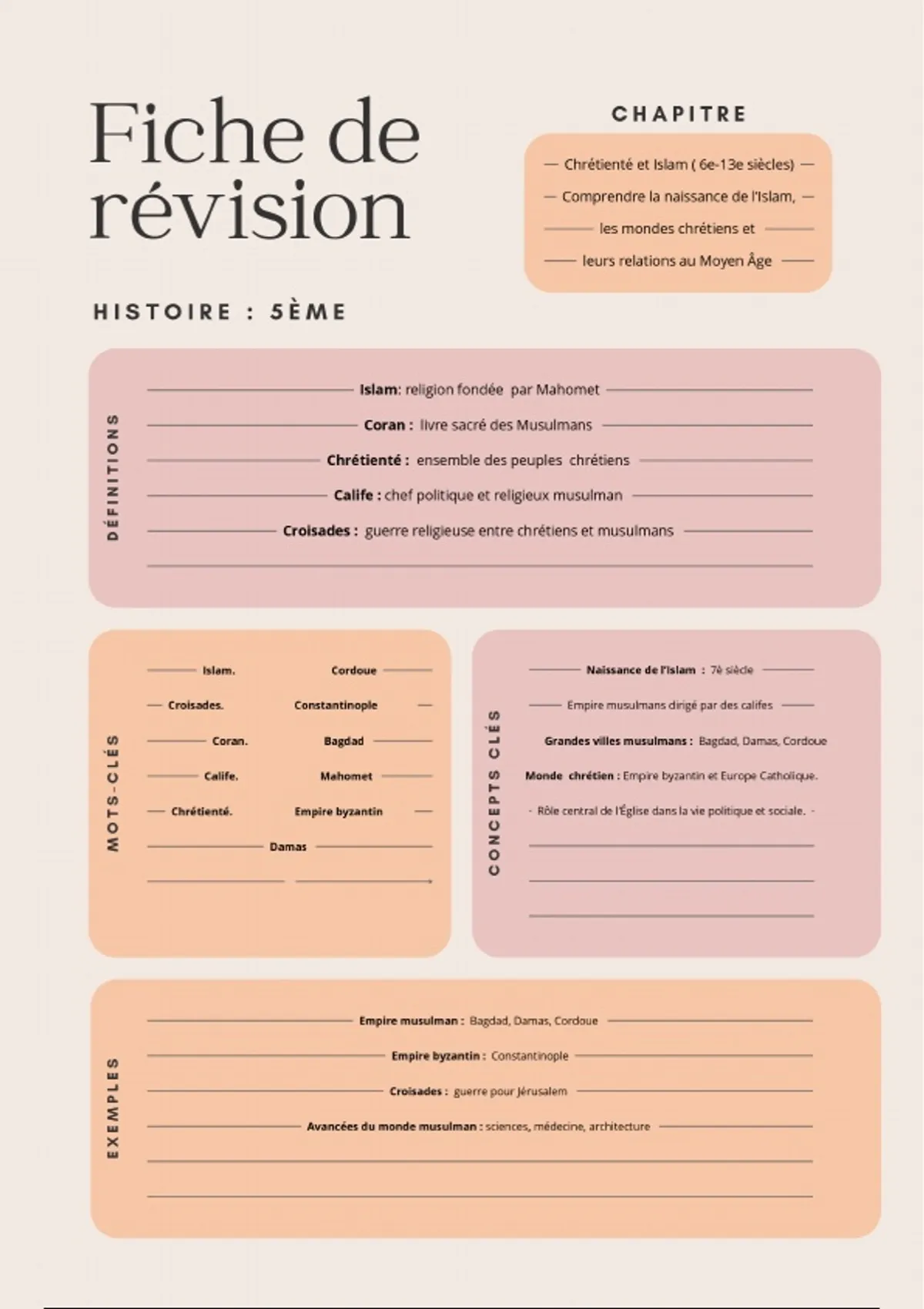 Cette fiche de révisions est destinée aux élèves de 5ᵉ au collège. Elle permet de revoir l’essentiel du programme de manière claire, simple et structurée. Idéale pour préparer un contrôle, réviser avant un examen ou consolider ses connaissances. Le document est rédigé avec des mots simples, adaptés au niveau collège, et présenté sous forme de résumé pour faciliter la mémorisation. Convient également aux parents et aux élèves en soutien scolaire.
