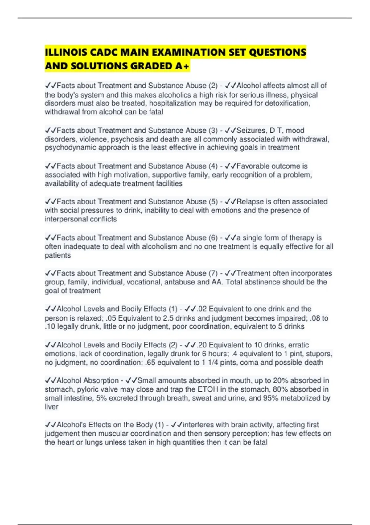 ILLINOIS CADC MAIN EXAMINATION SET QUESTIONS AND SOLUTIONS GRADED A+