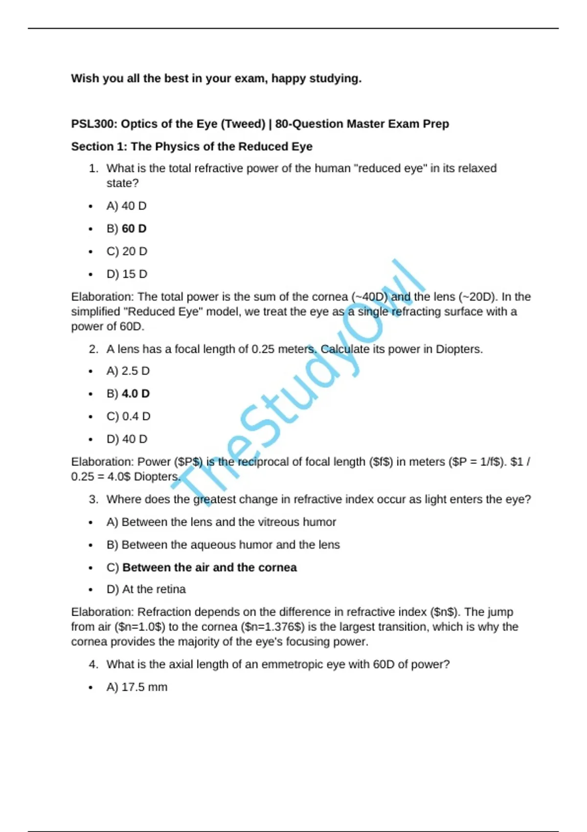 PSL300: Optics of the Eye (Tweed) | 80-Question Master Exam Prep
