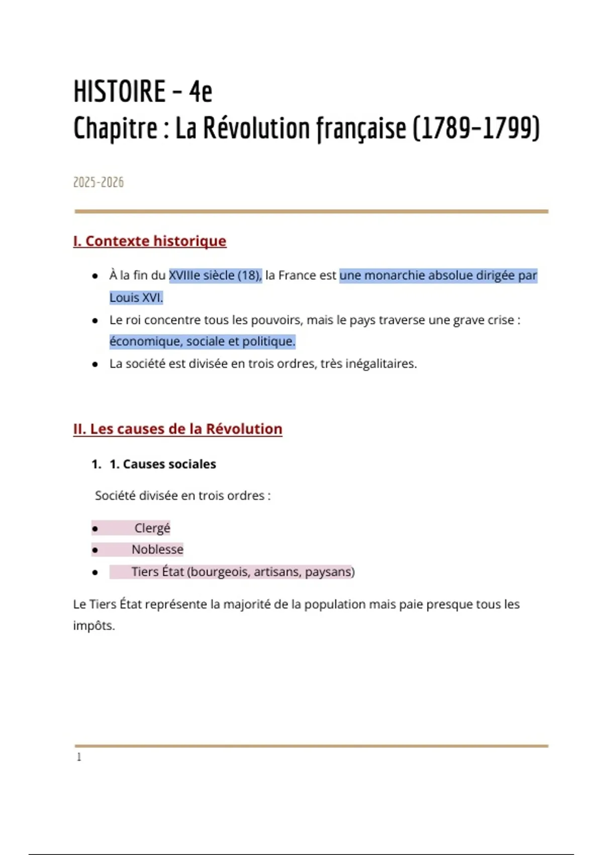 Chapitre : La Révolution française (1789–1799)