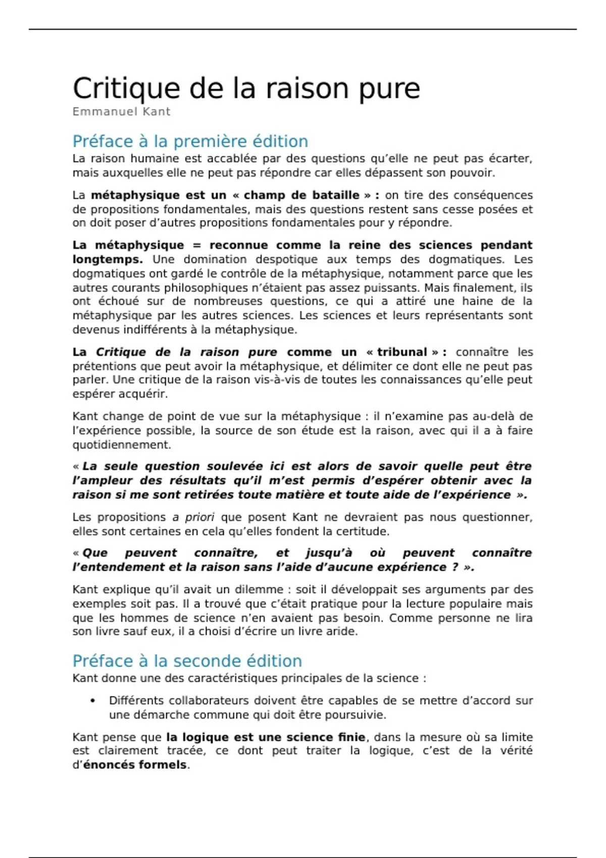 Kant explique qu’il avait un dilemme : soit il développait ses arguments par des