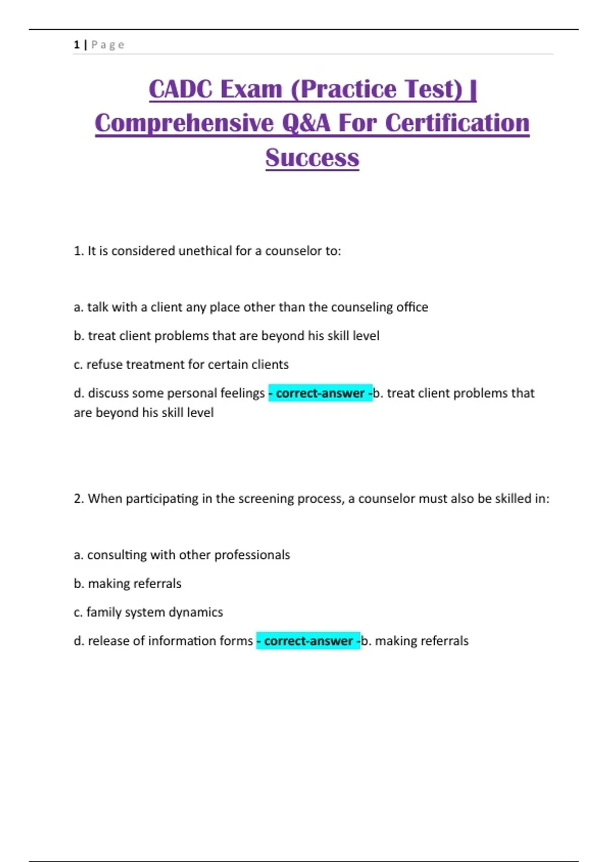 CADC Exam (Practice Test) | Comprehensive Q&A For Certification Success