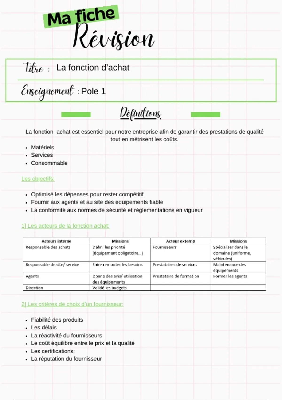 1] Les acteurs de la fonction achat: