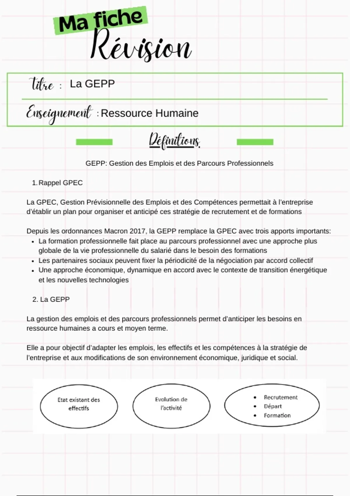 Depuis les ordonnances Macron 2017, la GEPP remplace la GPEC avec trois apports importants: