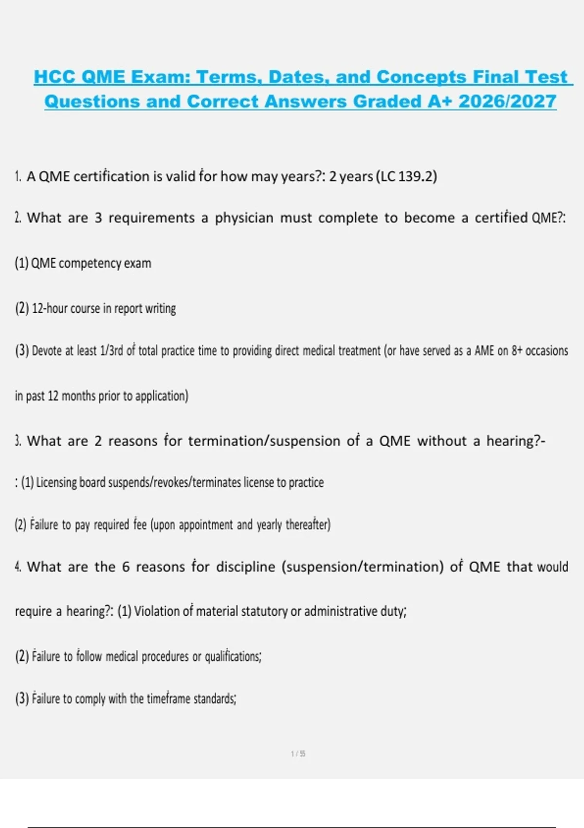 1. A QME certiḟication is valid ḟor how may years?: 2 years (LC 139.2)