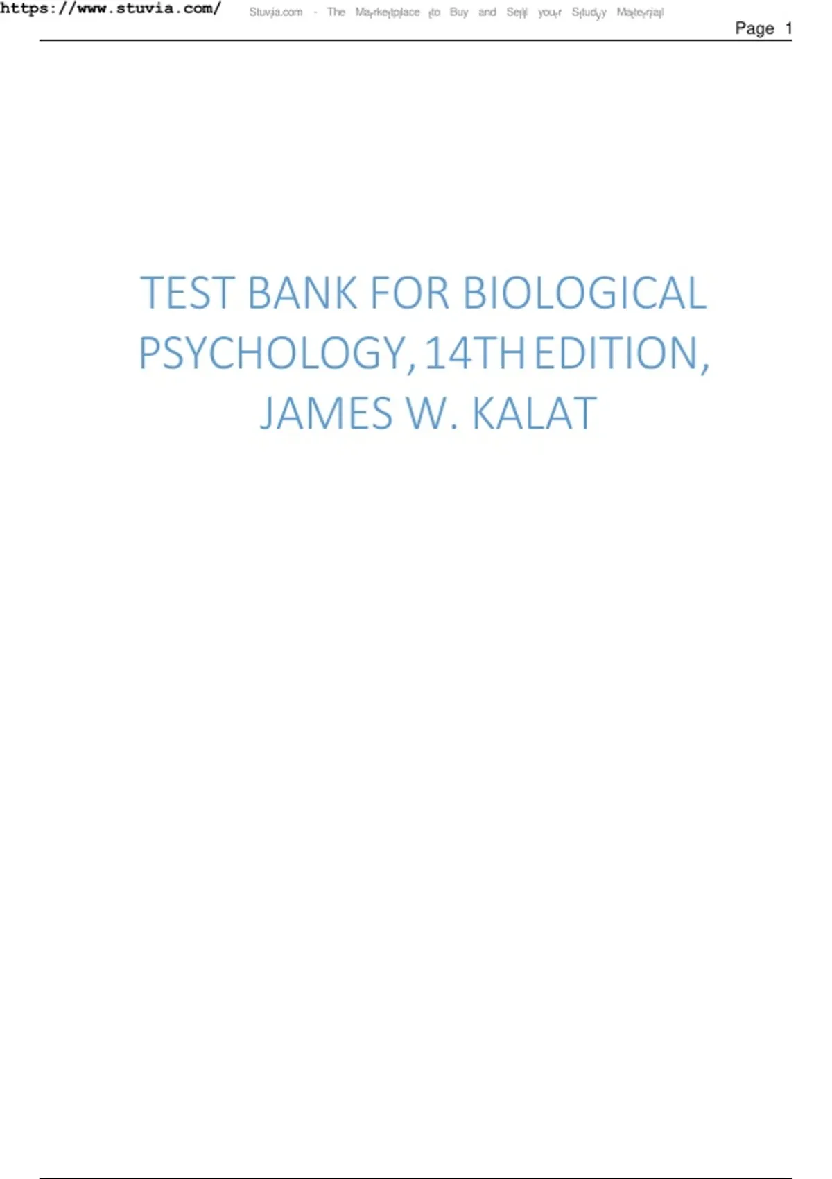 TEST BANK – Biological Psychology 14th Edition by James W. Kalat | Complete PDF Exam Questions & Answers 2025/2026