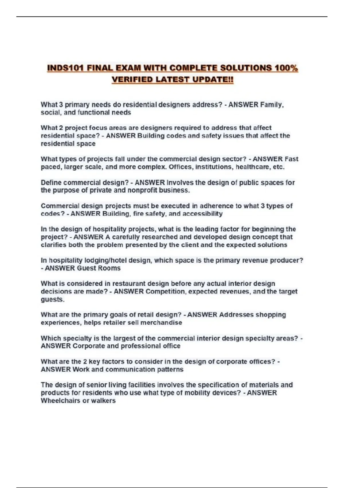 INDS101 FINAL EXAM WITH COMPLETE SOLUTIONS 100% VERIFIED LATEST UPDATE!!...