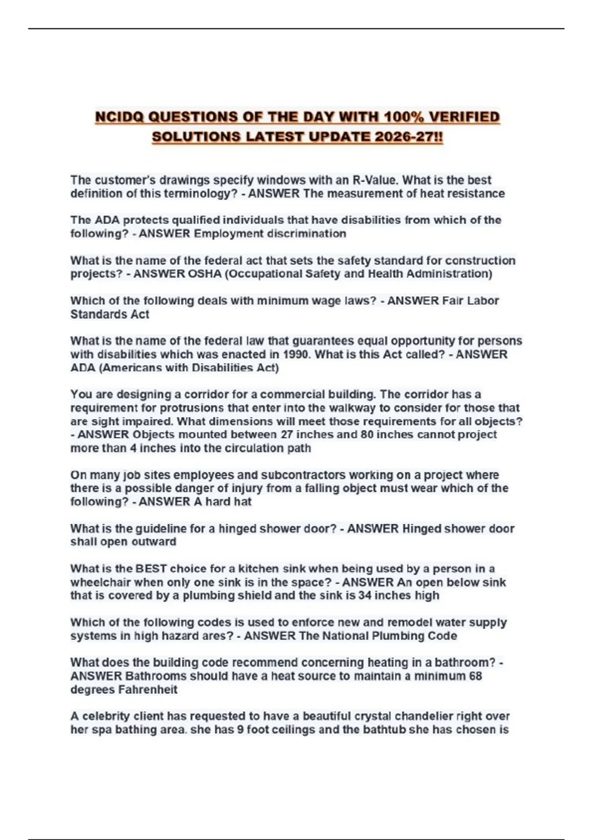 NCIDQ QUESTIONS OF THE DAY WITH 100% VERIFIED SOLUTIONS LATEST UPDATE 2026-27!!...
