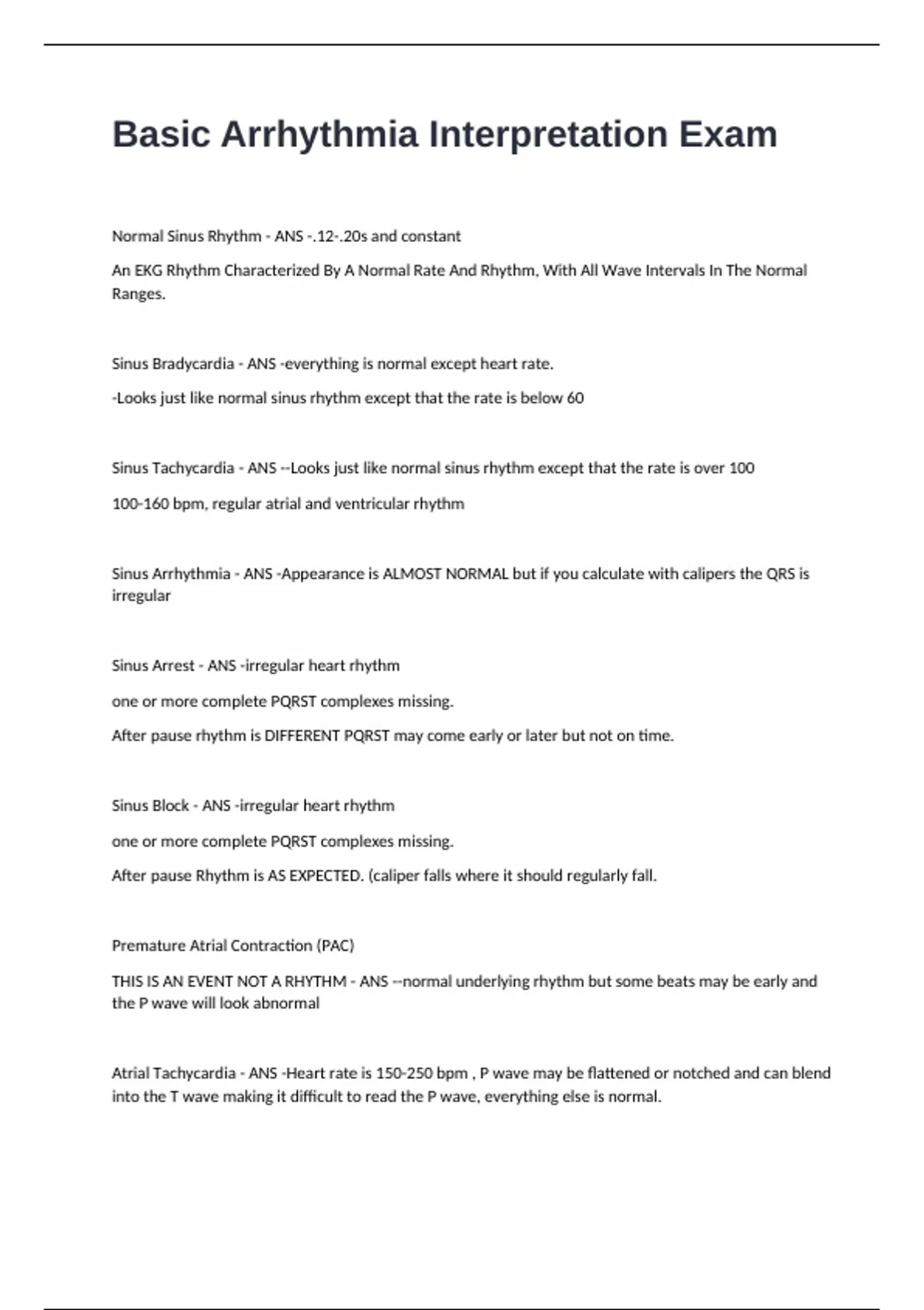 Sinus Tachycardia - ANS --Looks just like normal sinus rhythm except that the rate is over 100