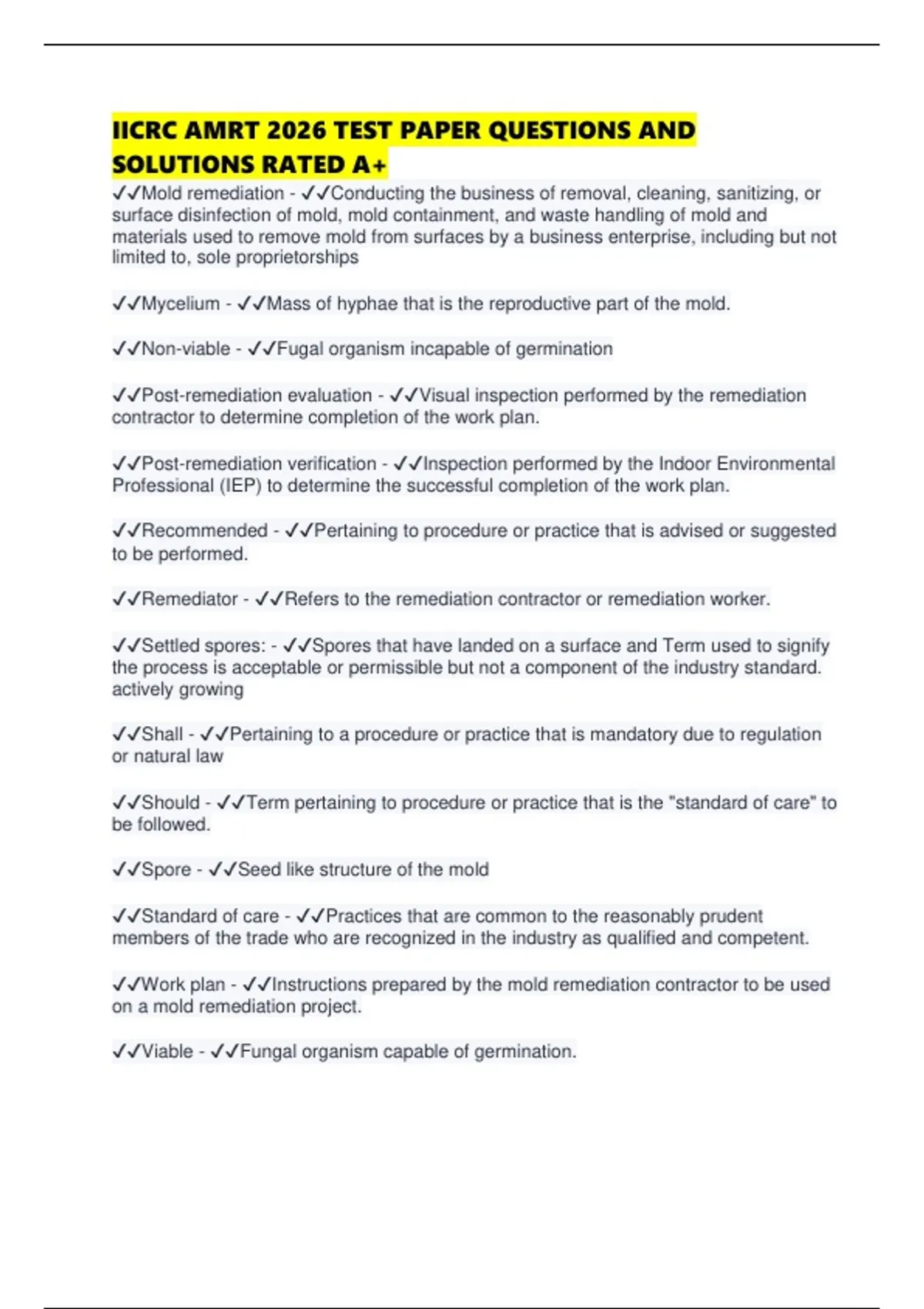 IICRC AMRT 2026 TEST PAPER QUESTIONS AND SOLUTIONS RATED A.pdf