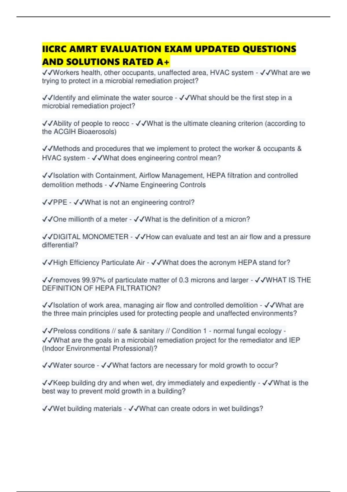 IICRC AMRT EVALUATION EXAM UPDATED QUESTIONS AND SOLUTIONS RATED A+