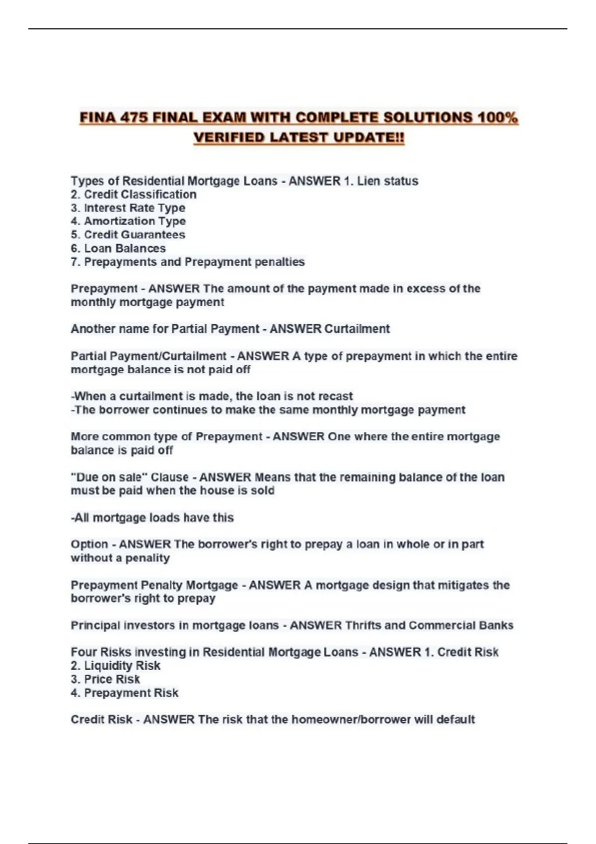 FINA 475 FINAL EXAM WITH COMPLETE SOLUTIONS 100% VERIFIED LATEST UPDATE!!...