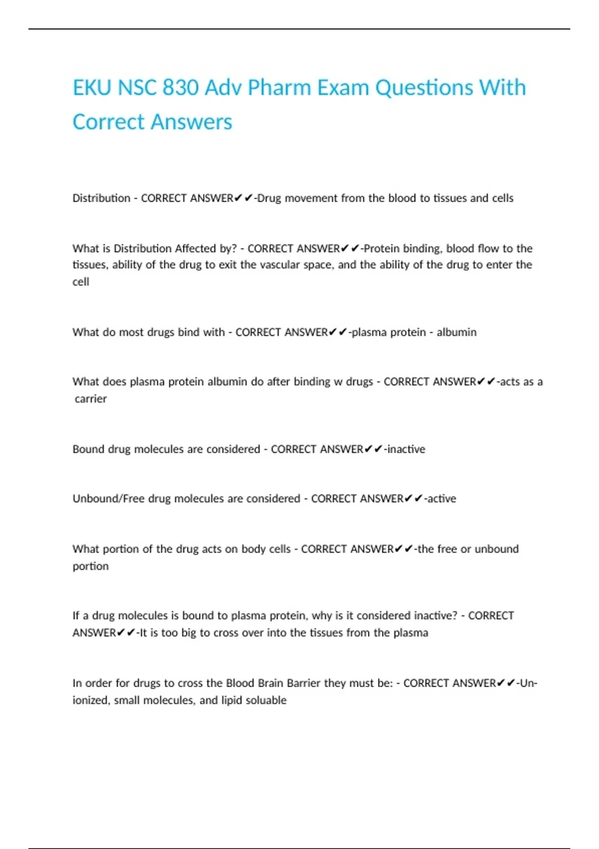 EKU NSC 830 Adv Pharm Exam Questions With Correct Answers.