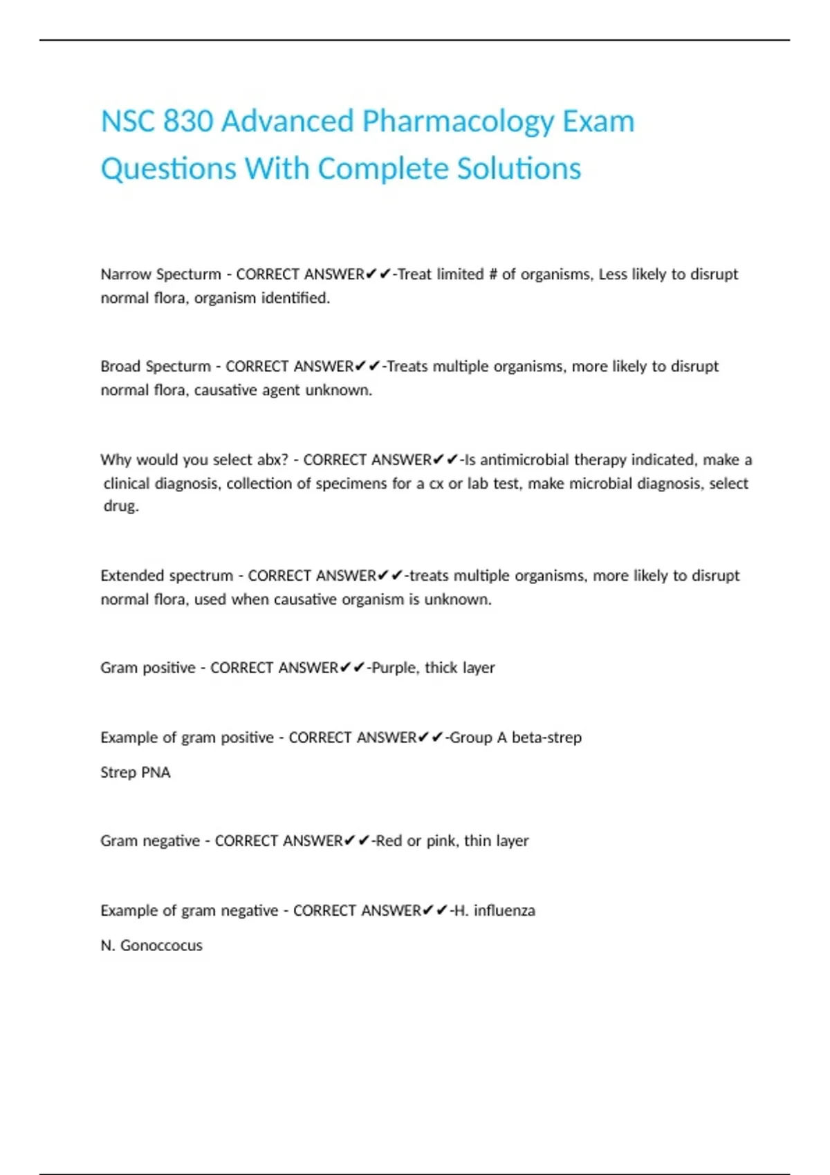 Extended |spectrum |- |CORRECT |ANSWER✔✔-treats |multiple |organisms, |more |likely |to |disrupt |