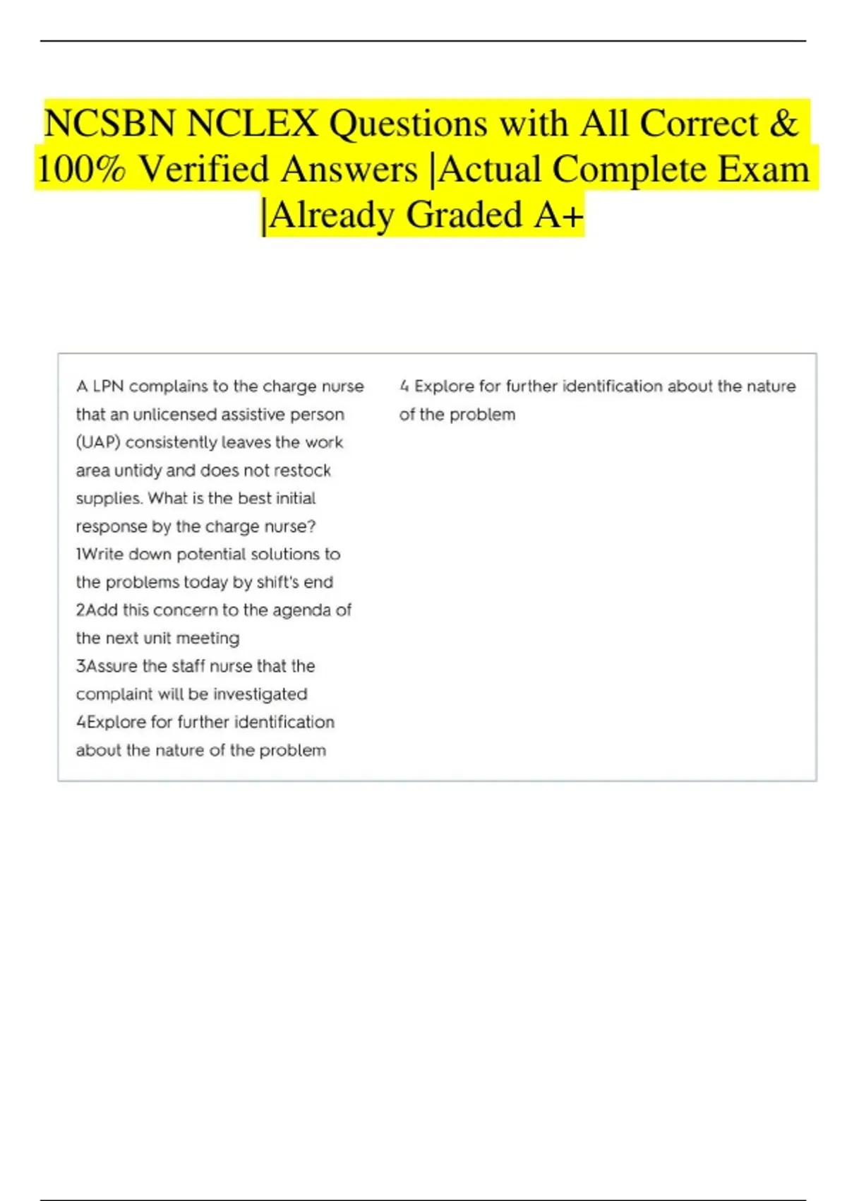 NCSBN NCLEX Questions with All Correct & 100% Verified Answers |Actual Complete Exam |Already Graded A+
