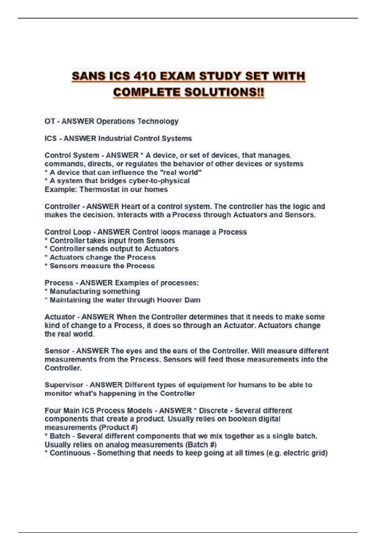 SANS ICS 410 EXAM STUDY SET WITH COMPLETE SOLUTIONS!!...