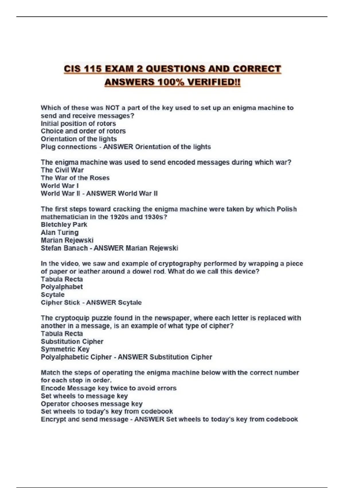 CIS 115 EXAM 2 QUESTIONS AND CORRECT ANSWERS 100% VERIFIED!!...