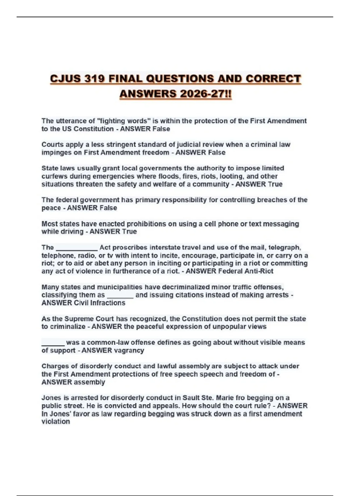 CJUS 319 FINAL QUESTIONS AND CORRECT ANSWERS 2026-27!!