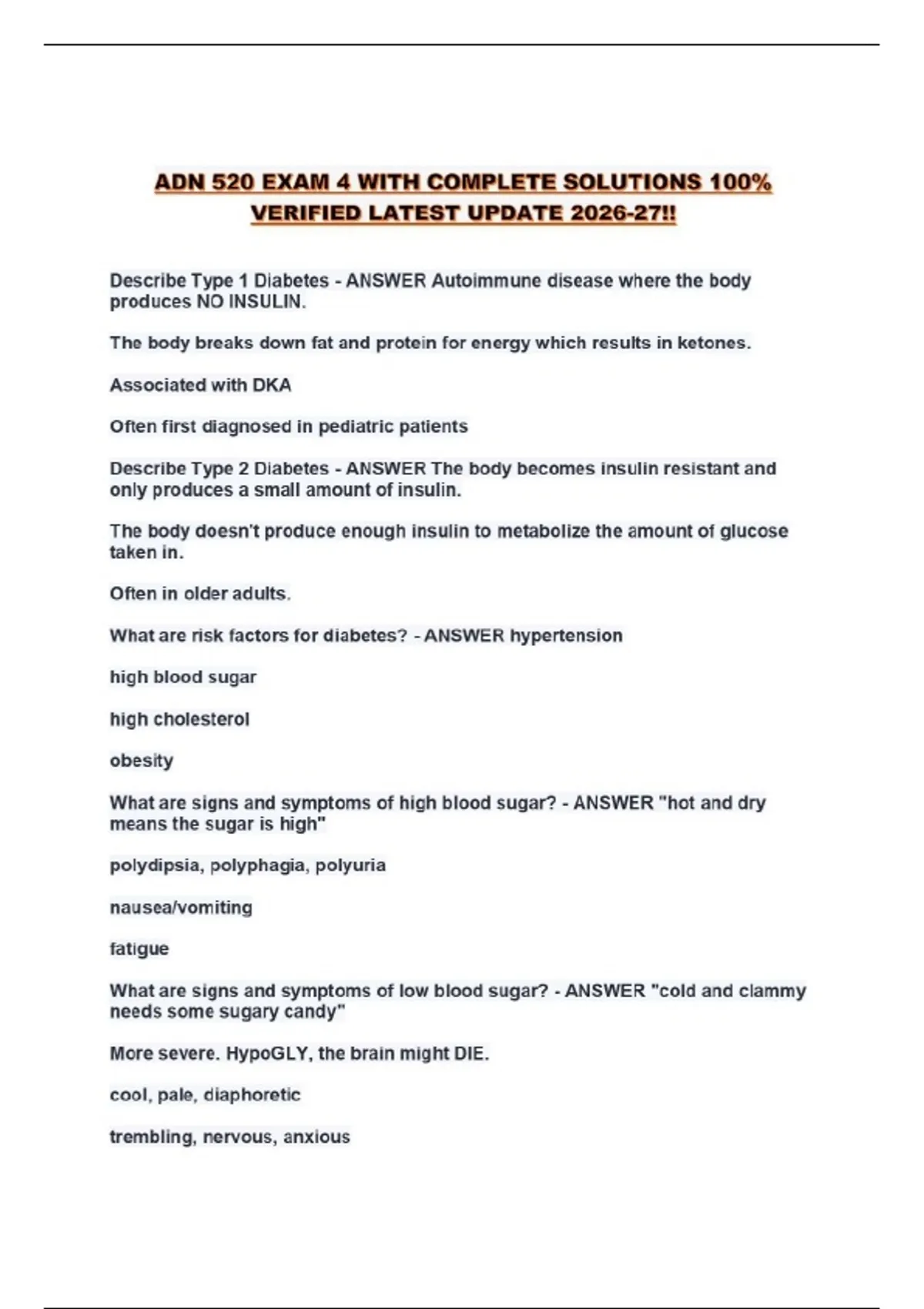 ADN 520 EXAM 4 WITH COMPLETE SOLUTIONS 100% VERIFIED LATEST UPDATE 2026-27!!...