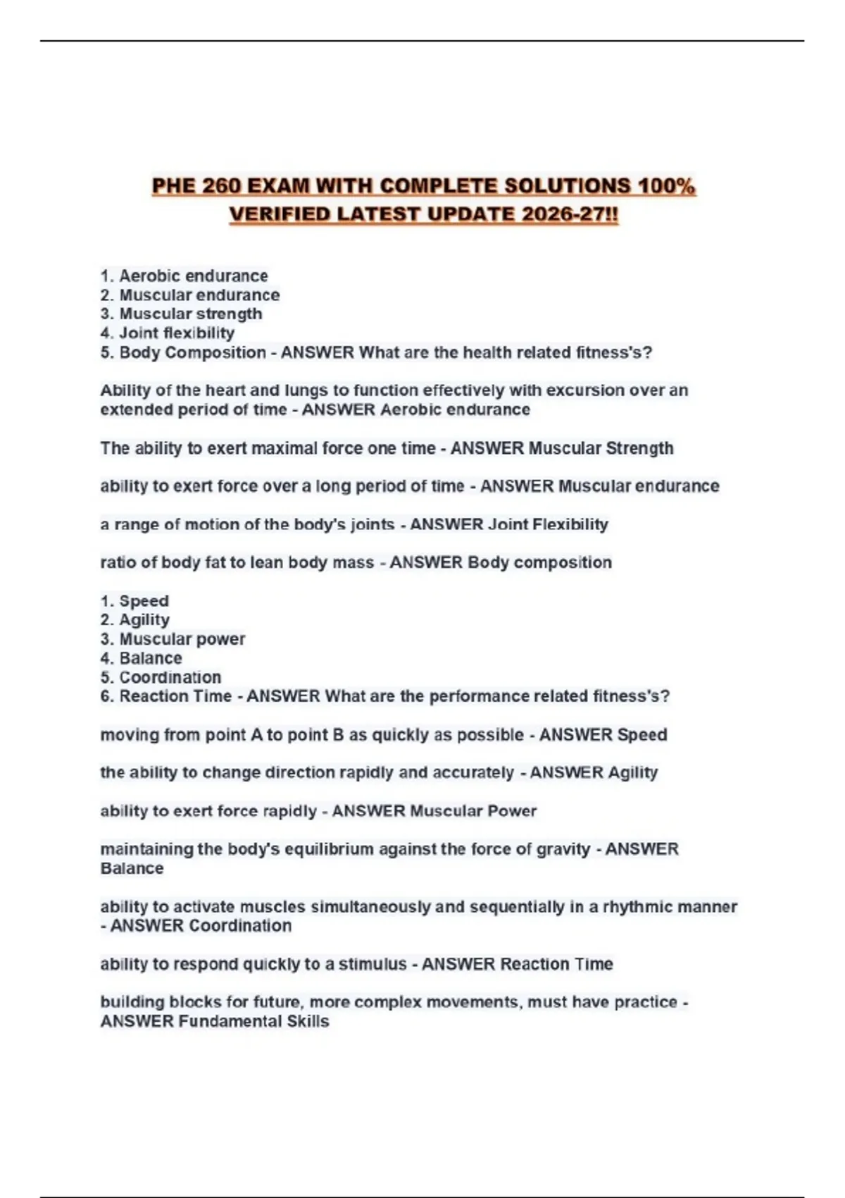 PHE 260 EXAM WITH COMPLETE SOLUTIONS 100% VERIFIED LATEST UPDATE 2026-27!!...