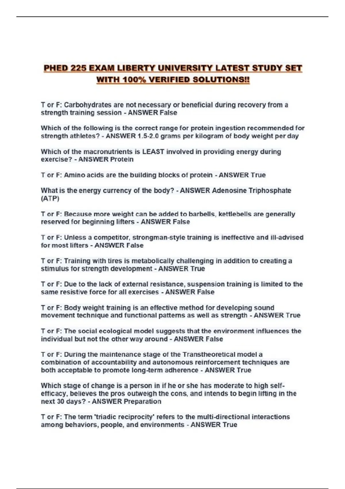 PHED 225 EXAM LIBERTY UNIVERSITY LATEST STUDY SET WITH 100% VERIFIED SOLUTIONS!!...