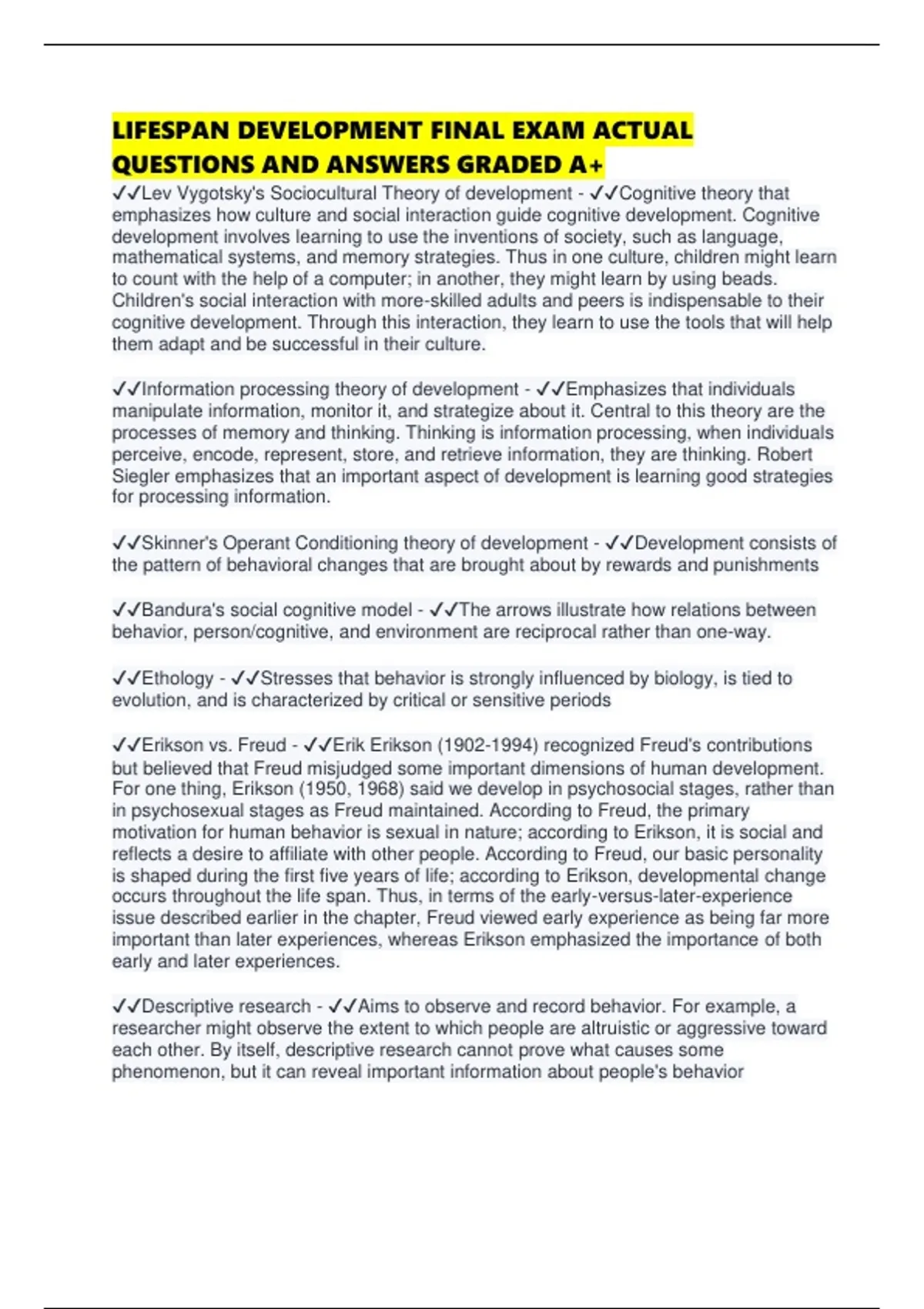 ✔✔Life-span perspective - ✔✔The perspective that development is lifelong,