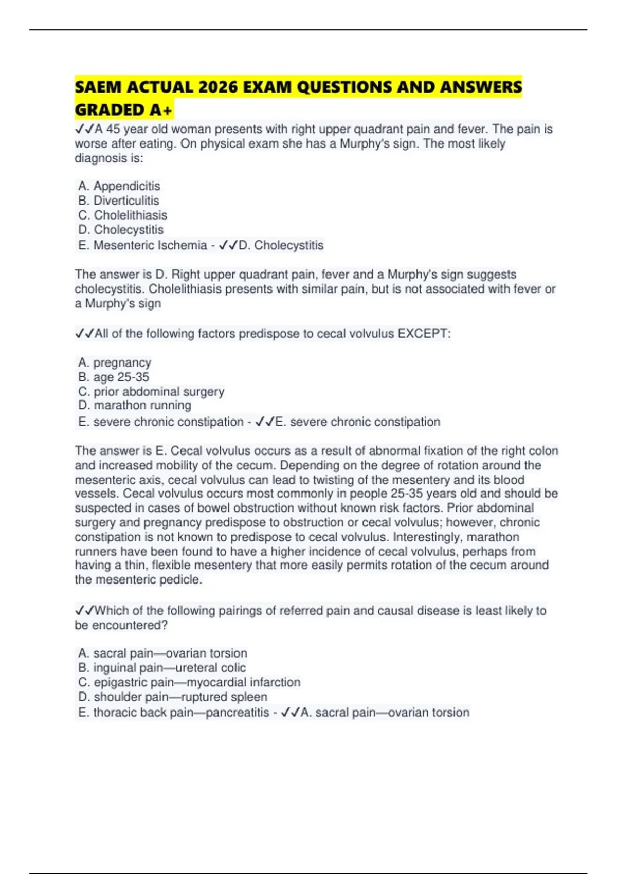 SAEM ACTUAL 2026 EXAM QUESTIONS AND ANSWERS GRADED A+